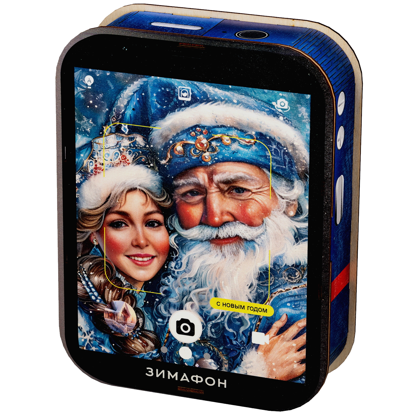 Современные дети настолько быстро развиваются, что порой их достаточно трудно удивить традиционными новогодними сладкими подарками. Именно для таких “продвинутых” сластен и был создан подарочный набор “Зимофон”. Это оригинальная деревянная коробочка, по форме оформлению максимально похожа на современный гаджет. На экране “Зимофона” мы видим Деда Мороза и Снегурочку, которые делают памятное фото с новогоднего праздника. Помимо хорошего разрешения камеры, данный смартфон обладает очень мощной памятью - в нем легко хранится целых 900 грамм вкусных и разнообразных сладостей, которых хватит на все новогодние праздники, а также небольшой памятный сувенир в виде символа наступающего года!